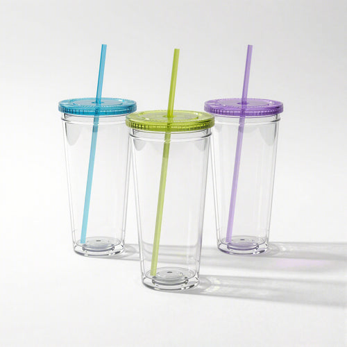 32oz Double Wall Plastic Tumbler with Straw - Customizable Gift Cup